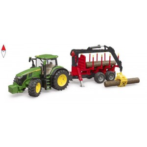 BRUDER TRATTORE JOHN DEERE 7R 350 CON BENNA E RIMORCHIO TRASPORTO TRONCHI