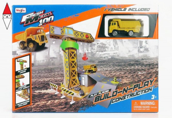 1/43 MAISTO ACCESSORIES DIORAMA - SET BUILD CONSTRUCTION WITH TRUCK YELLOW GREY